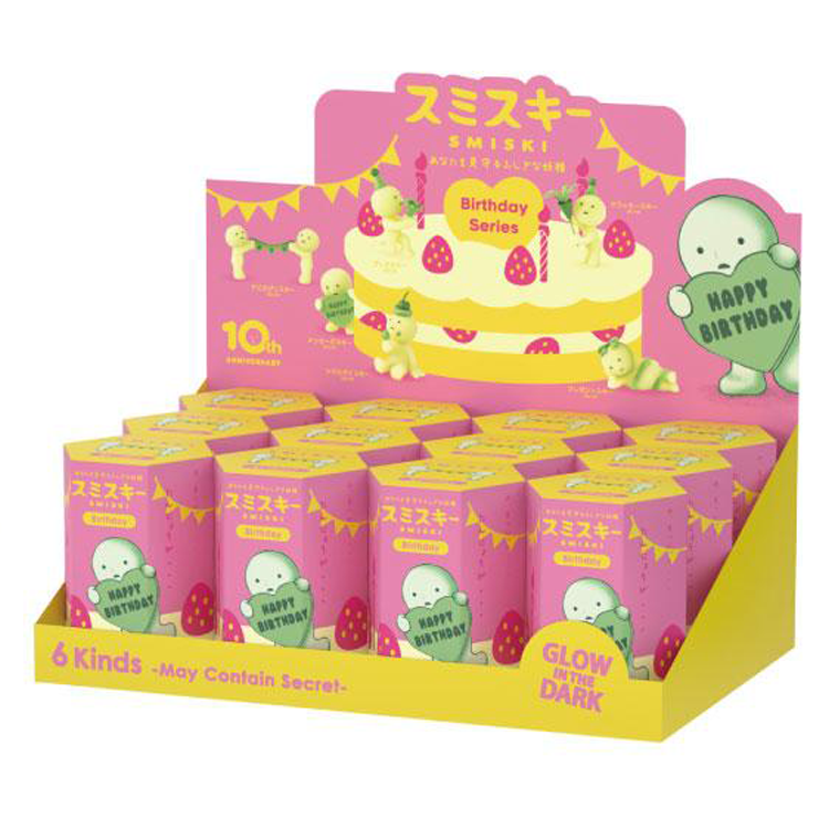 The lineup includes 6 kinds + 1 secret, including the "SMISKI Birthday Message" that delivers a message to you on your birthday, the "SMISKI Wrapped Up" that pretends to be a present with a ribbon wrapped around it, and the "SMISKI Tasting" that is snacking on a birthday cake.