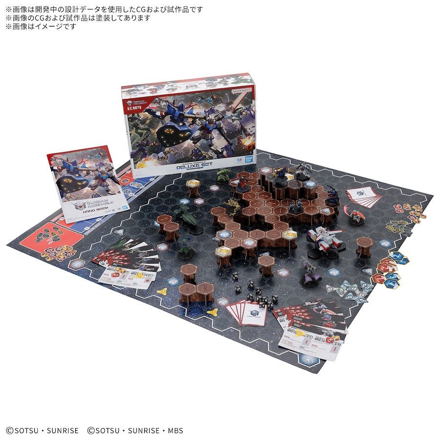 Mobile Suits from all worlds and timelines gather together for the ultimate clash in this all-new miniatures tabletop game! The modeling techniques honed through Gunpla have finally reached a new stage where you can "play by fighting."