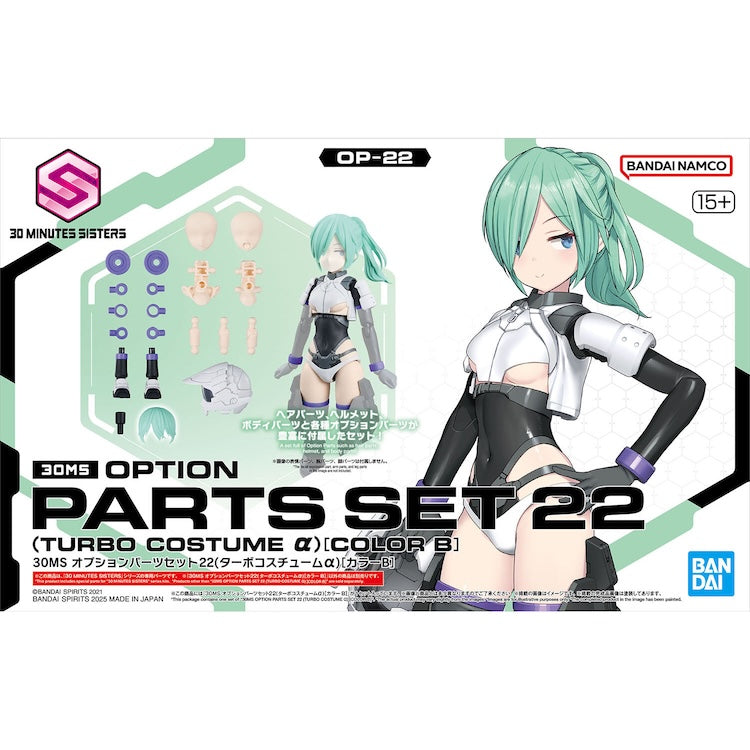 Bandai is proud to present the next set of optional parts in the fan favorite 30 Minutes Sisters line: the Turbo Costume Beta (Color A)! In addition to two unprinted face parts, two types of head parts (FP-I type) are included. Combine with the "30 MINUTES SISTERS Water Transfer Decal Universal" (sold separately) to create expressive characters! Numerous ring-type joint parts that can be attached to the arms and legs are also included.
